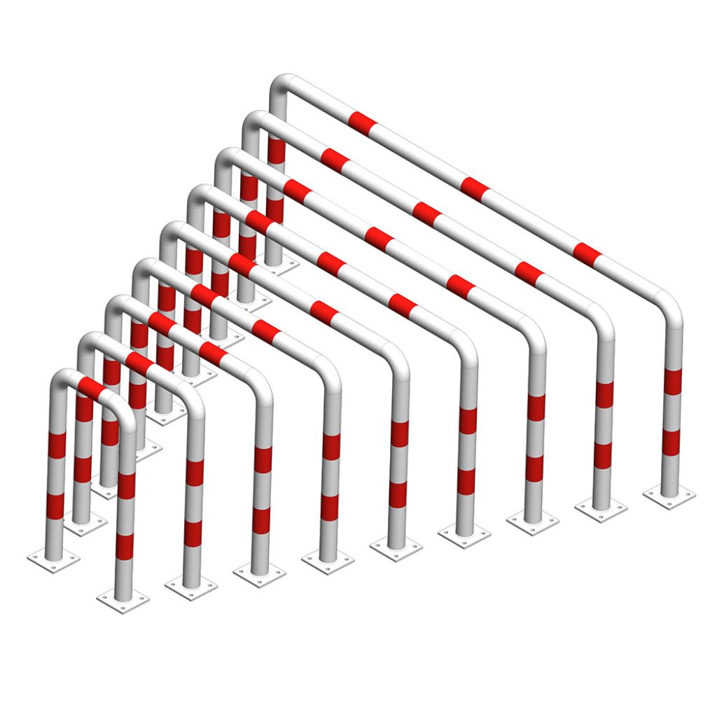 Aparatoare de protectie metalica tip arc 800x800 mm diametru 76.1 mm, alba cu benzi rosii reflectorizante