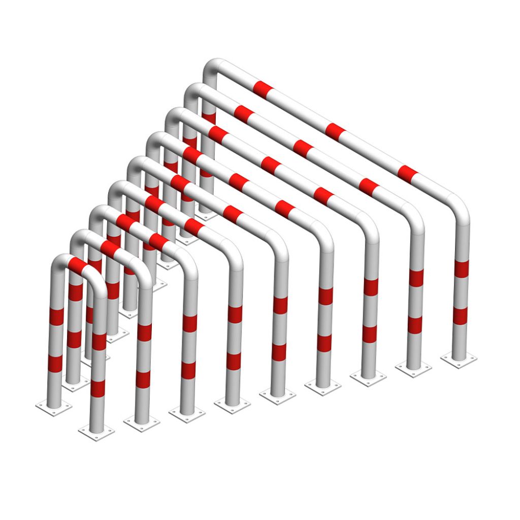 Aparatoare de protectie metalica tip arc 800x800 mm diametru 76.1 mm, alba cu benzi rosii reflectorizante