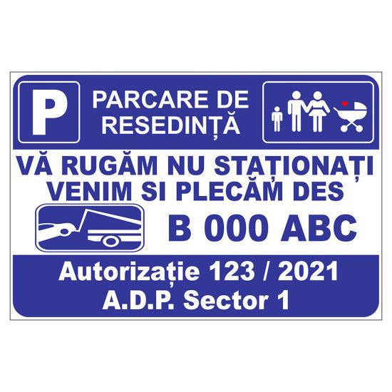 Indicator pentru parcare autorizatia nr primaria numar auto 200x300 mm PVC 1 mm