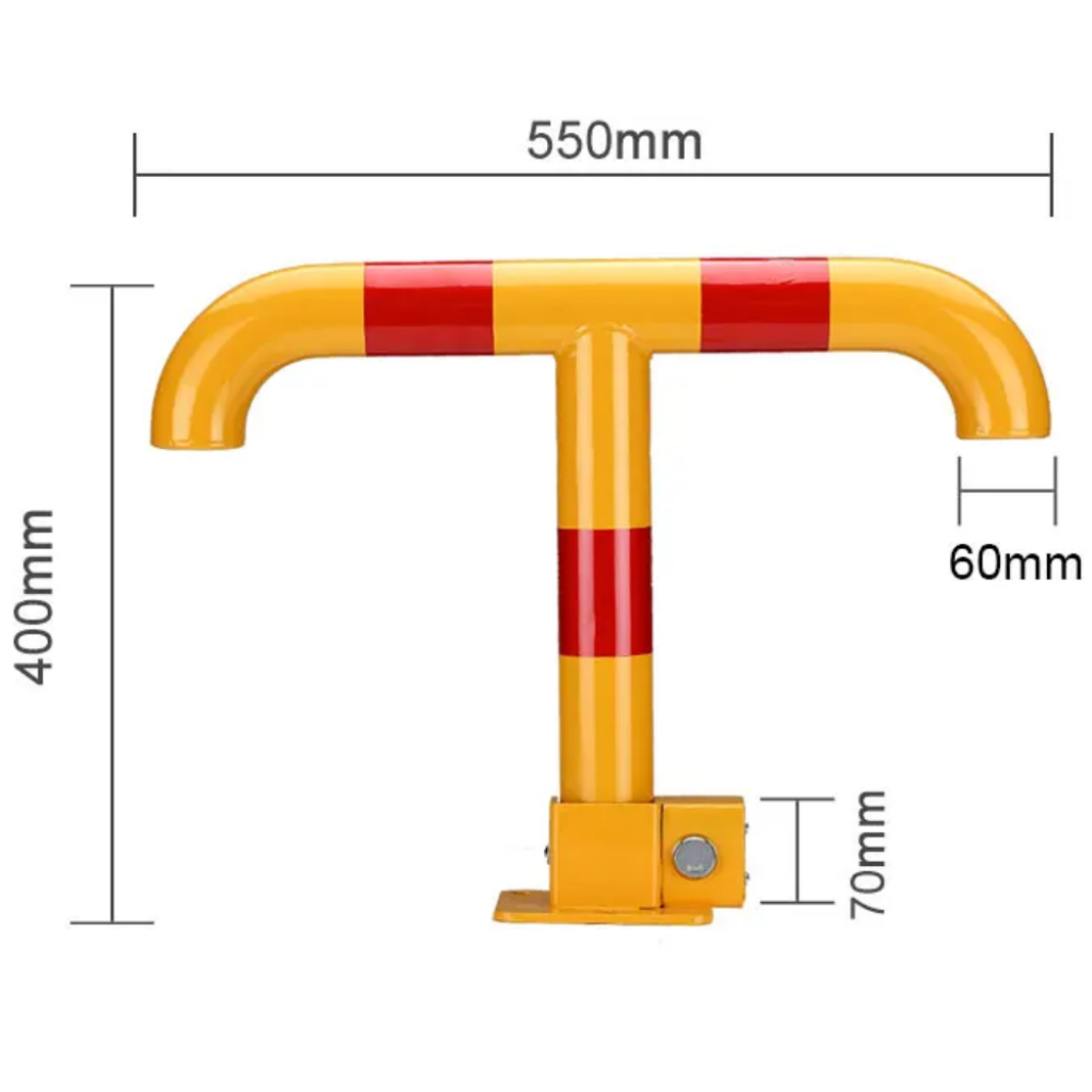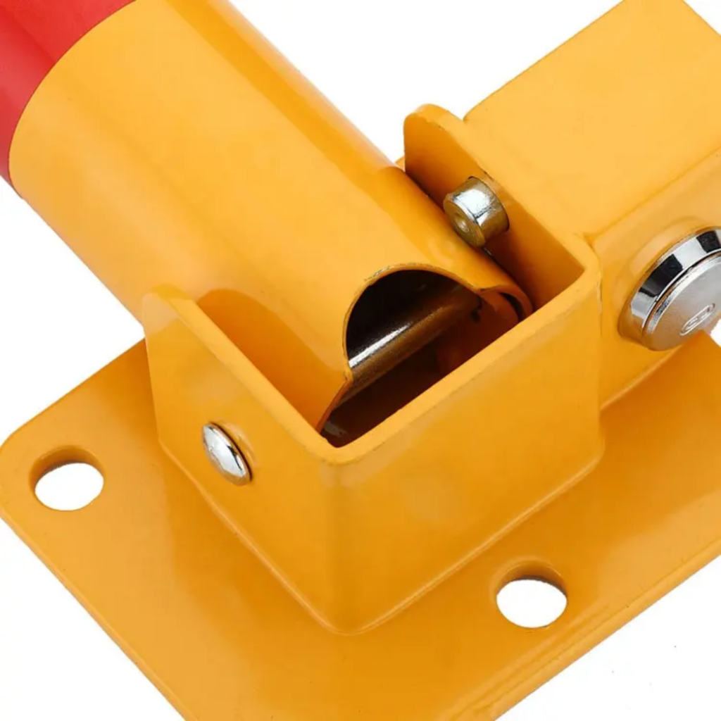 Vorbim despre un sistem antifurt mecanic pentru loc de parcare, realizat din oțel rezistent, finisat în culoare galbenă de semnalizare pentru vizibilitate maximă, echipat cu sistem de închidere cu cheie și livrat complet cu dibluri și holșuruburi pentru montaj rapid pe beton sau asfalt.