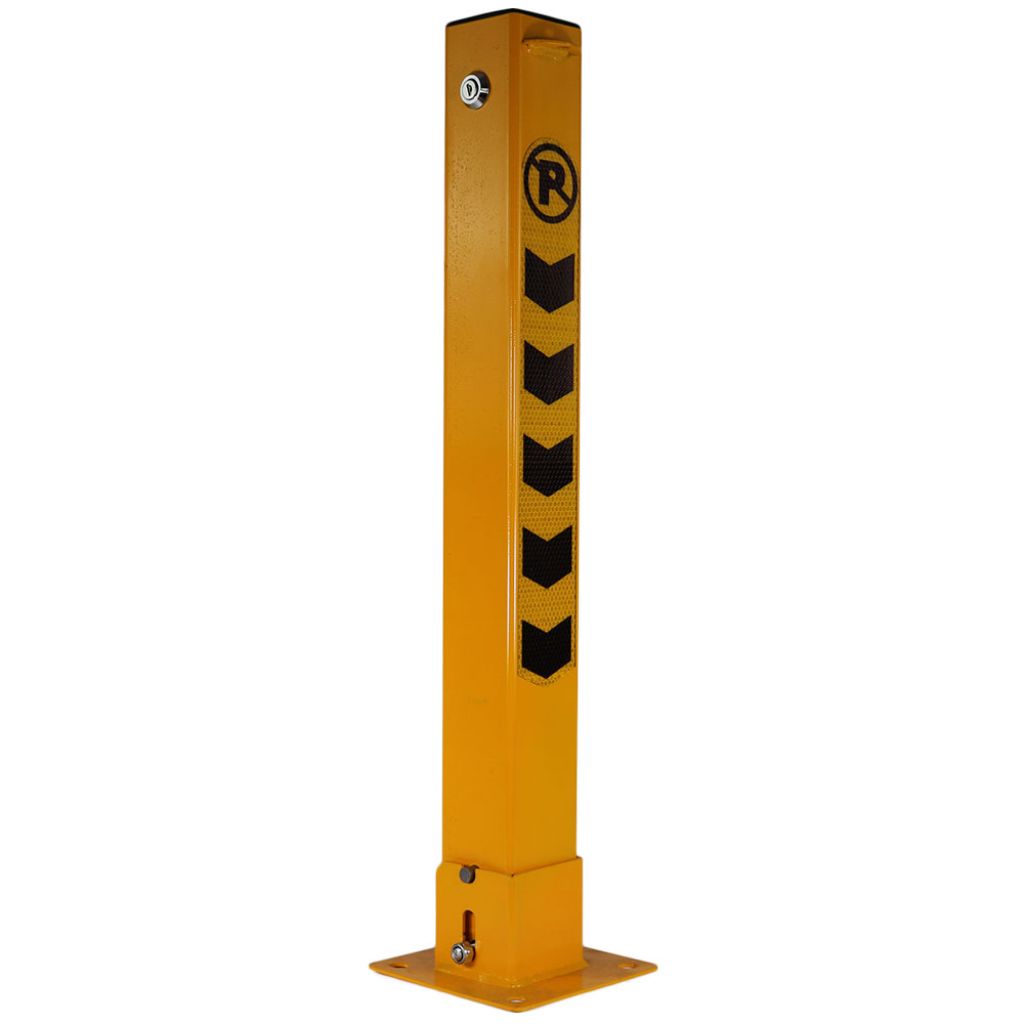 Blocator rezervare parcare privata tip stalp PAT model BPS-02, 80x80x800 mm, galben, lacat, dibluri, holsuruburi