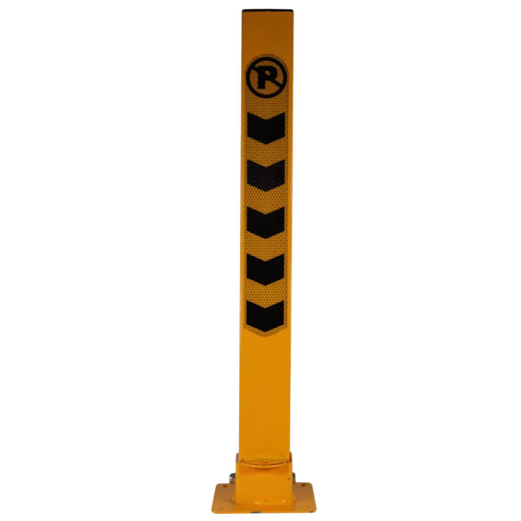Blocator rezervare parcare privata tip stalp PAT model BPS-02, 80x80x800 mm, galben, lacat, dibluri, holsuruburi