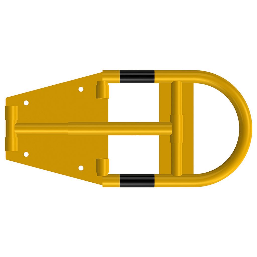 Blocator pentru parcare tip arc Arcada Eco model BPA-03, piston, potocaliu, lacăt, dibluri, holșuruburi