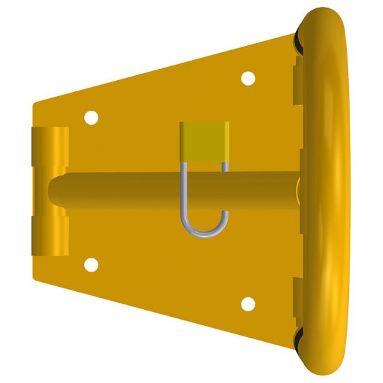 Blocator pentru loc de parcare tip arc Arcada model BPA-01, 350x450 mm, piston, galben, lacăt, dibluri, holșuruburi