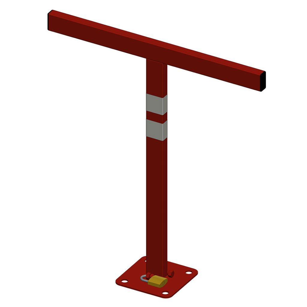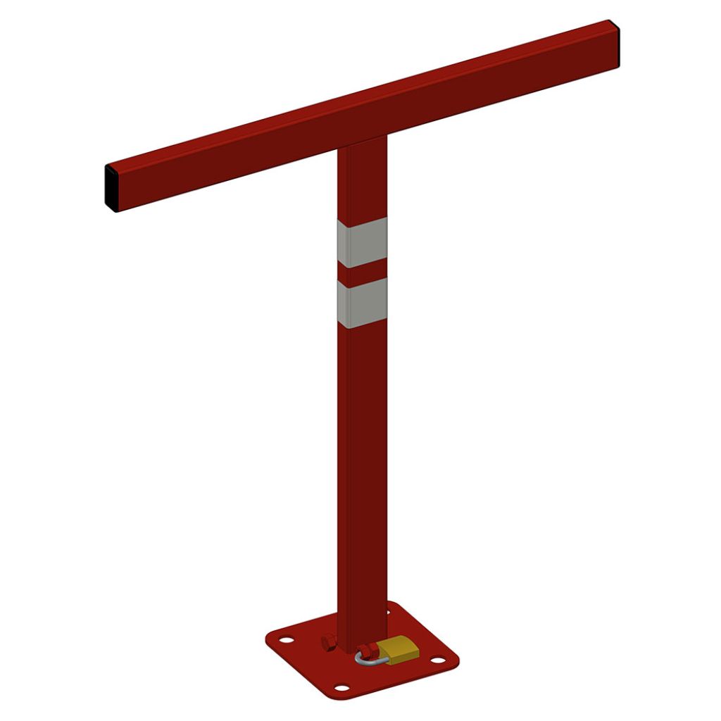 Construit din oțel rezistent, finisat în culoare roșu intens pentru vizibilitate ridicată, modelul TeCO BPT-02 combină durabilitatea industrială cu montajul facil și utilizarea intuitivă. Este un sistem manual, cu rabatare rapidă și blocare prin lacăt inclus.