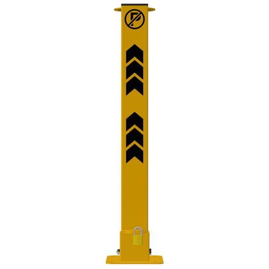 Blocator rezervare parcare privata tip stalp PAT model BPS-02, 80x80x800 mm, galben, lacat, dibluri, holsuruburi este usor de instalat, iar utilizarea lui va face sa scapati de grija locului de parcare.