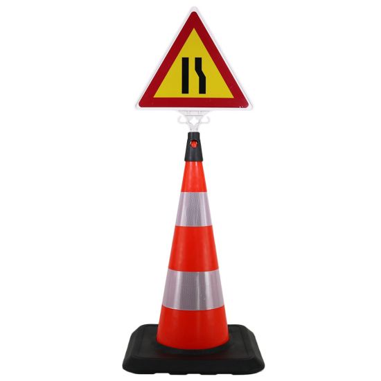 Kit format din un con rutier cu inaltime de 750 mm si un indicator din plastic pentru drum ingustat pe partea dreapta.