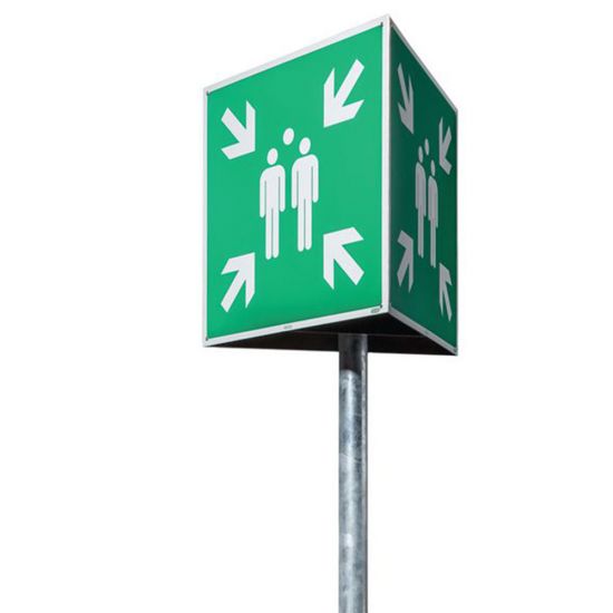 Panou indicator cub loc de adunare in caz de urgenta 400x400 mm aluminiu Nentra model CAZ 401 de exterior