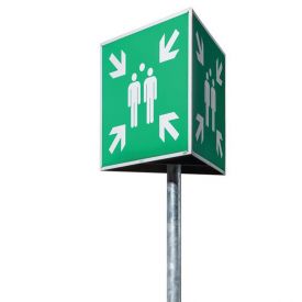 Panou indicator cub loc de adunare in caz de urgenta 400x400 mm otel vopsit Nentra model CAZ 402 de exterior