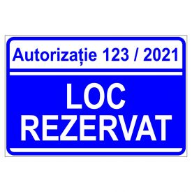 Placuta cu inscriptie autorizatie numar loc rezervat 200x300 mm PVC 1 mm