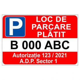 Indicator pentru parcare autorizatia nr primaria numar auto 200x300 mm PVC 1 mm