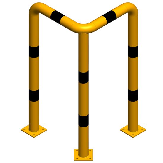 Protectie metalica pentru colt 800x800x400 mm din teava de 76.1x3 mm, zincata, benzi galbene reflectorizante