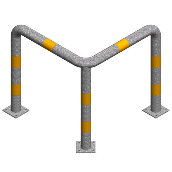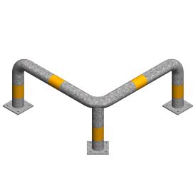 Protectie metalica pentru colt 800x800x400 mm din teava de 76.1x3 mm, zincata, benzi galbene reflectorizante
