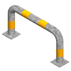 Protectie metalica pentru colt 800x800x400 mm din teava de 60.3x3 mm, zincata, benzi galbene reflectorizante