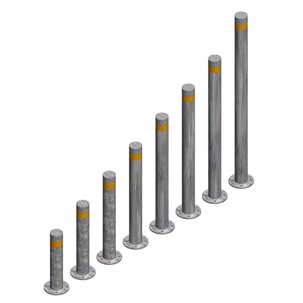 Stalpii metalici de protectie cu dimensiunea de 76.1x600x3 mm sunt folositi pentru delimitarea in zonele industriale, comerciale, private sau publice, a traficului auto si pietonal.
